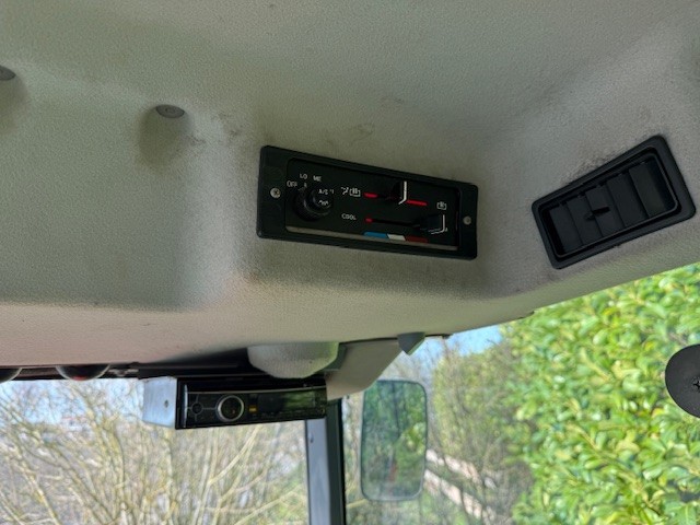 Er staat een ruime cabine op met rondom werkverlichting,radio,kachel,geveerde stoel en airco.