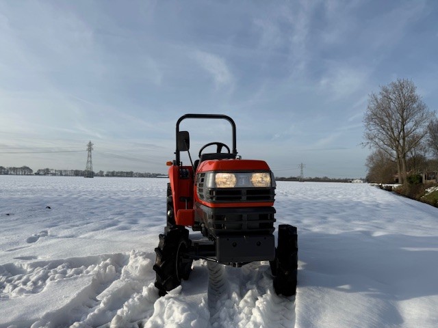 Deze 3 cilinder kubota trekker heeft 21 pk motorvermogen en stuurbekrachtiging.