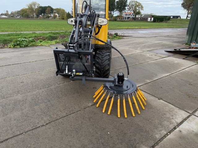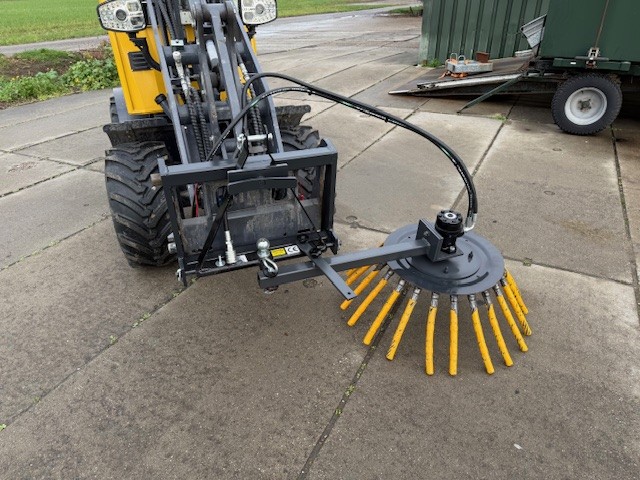 Degelijke betaalbare onkruidborstel, deze borstel is geschikt voor achter elke minitractor met enkel of dubbelwerkend ventiel.